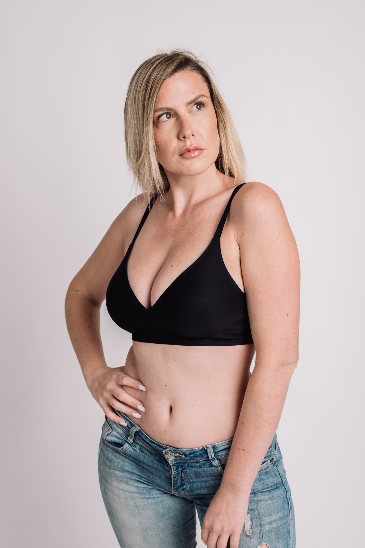 Bezešvá podprsenka vyrobená z vysoce kvalitních materiálů. Protože neobsahuje žádnou podpůrnou výztuhu, je pohodlná pro každodenní nošení a neviditelná pod oblečením. Měkké kostice se snadno vyjímají.